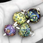 Handcrafted in sterling silver, these interchangeable pendants come in various length fitting beads with 1/16" hole. Unscrew the 1/8" diameter cylindrical nut on the bottom to thread on the bead. For beads with hole larger than 1/8", a 1/4" diameter disc is included to prevent the bead from sliding off. Finger tighten securely with a rubbery or silicone material (such as a shelf/drawer liner) is recommended. Select the length to fit the size of your bead.
